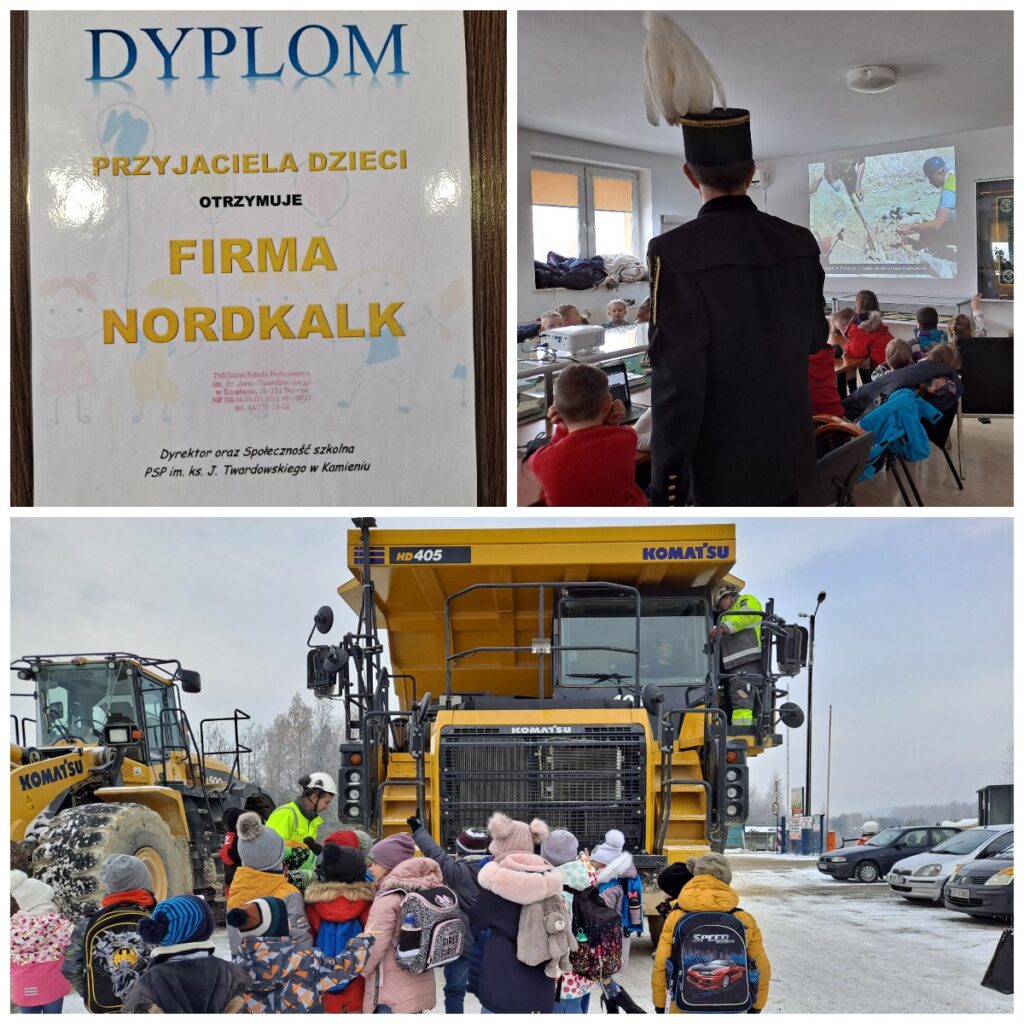 Podczas tego spotkania, nasi koledzy ubrani w galowe mundury, pełnili rolę przewodników po świecie wapienia i górniczych tradycji. Opowiadali dzieciom fascynujące historie związane z pracą w kopalni i okazach znajdowanych podczas prac górniczych. Dzięki ich zaangażowaniu i pasji, uczniowie mieli okazję lepiej zrozumieć proces wydobycia wapienia oraz jego kluczową rolę w różnych dziedzinach naszego życia.