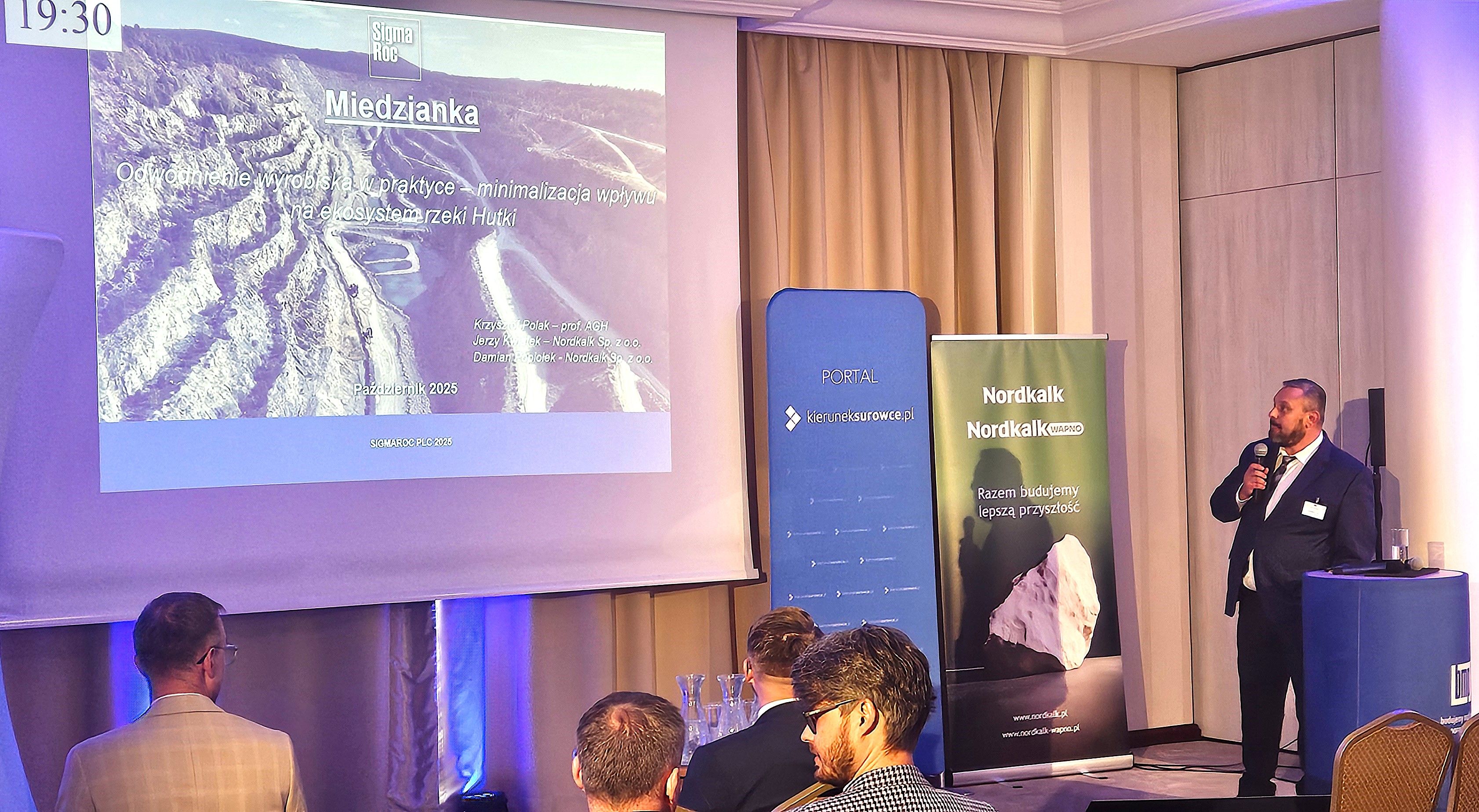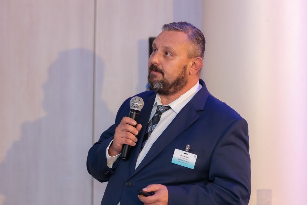 Podczas wieczornej gali, wieńczącej pierwszy dzień Sympozjum, Jerzy Kwiatek odebrał z rąk organizatorów — BMP i Kierunek Surowce — statuetkę — podziękowanie dla Honorowego Gospodarza wydarzenia. To wyróżnienie doceniło nasz wkład organizacyjny, merytoryczny i promocyjny, a także symbolicznie potwierdziło, że Nordkalk była centralnym elementem tego wydarzenia.